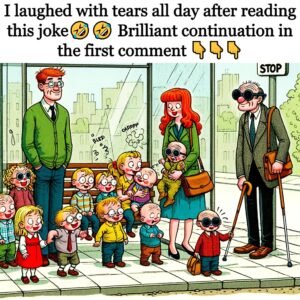 A husband and wife are waiting at the bus stop with their nine children. A blind man joins them after a few minutes. When the bus arrives. They find it…
