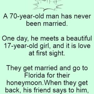 A 70-year-old man has never been married. One day, he meets a beautiful 17-year-old girl, and it is love at first sight. They get married and go to Florida for…