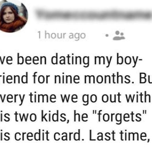My boyfriend conveniently “forgets” his credit card every time we go out to eat, so… – read here