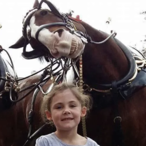 The father takes a picture of his daughter next to a horse. On closer inspection, he cannot believe what he sees
