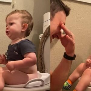 In this heartwarming clip, young Matty’s potty training journey takes an unexpected and hilarious turn, bringing smiles to those in need of a pick-me-up. Seated on the potty, Matty proudly…