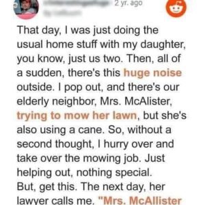 Single dad helps old lady mow her lawn, soon gets a shocking call from her lawyer