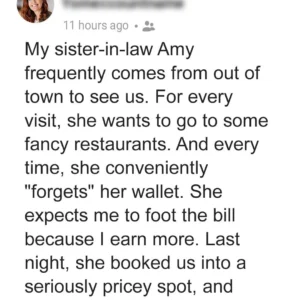My Husband’s Sister ‘Conveniently Forgets’ Her Wallet Every Time We Dine Out – I Secretly Took It Once