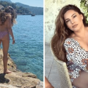 Her pic wearing a bikini on the beach is being shared but when the camera zooms out we understand why