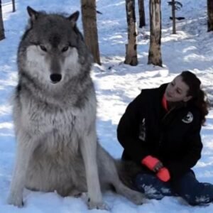 Keep an eye out for the enormous wolf making eye contact with this woman.